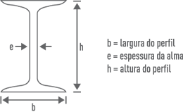 Bitola (h x b) | Alma | Espessura da alma (e) | Peso Teórico Kg/m |